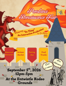 On September 5th, 2026, from 12 – 5 pm at the Entwistle Rodeo Grounds, Tipple Park Museum will be holding the Pembina Renaissance Fair.